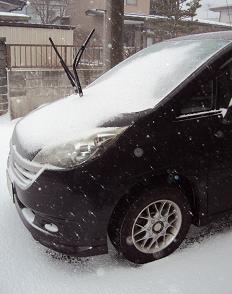 ←タイヤの半分くらいまで積もった雪。ここまで掻いたらヘトヘト