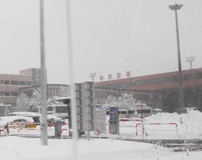 ←今朝の空港の様子。雪は相変わらず降っていました
