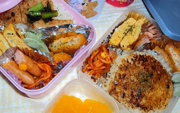 HAさんは焼肉弁当、TA君は焼肉入り焼きおにぎり
