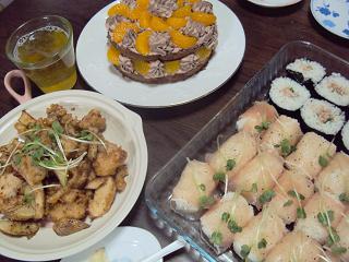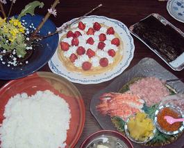 ←HAさんの好きな苺ケーキに手巻きすしにしました。