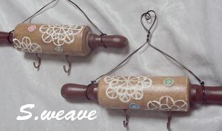 ←レース模様のフック。輪ゴムやキッチンの小物を掛けて。