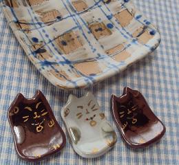 ←益子焼のお皿と箸おき。箸おきは招き猫で縁起物だって