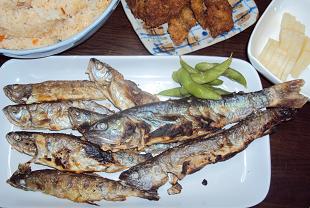 ←食べる分だけ釣ってきて塩焼きに。川の恵みをありがたく頂きました