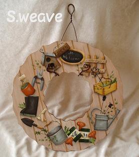 ←秋っぽい色合いのリースとバスケット