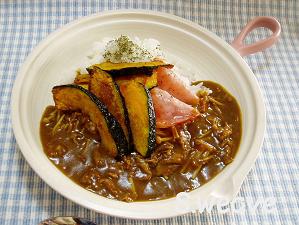 ←お昼は「カリカリカボチャのせキノコたっぷりカレー」を作りました。