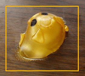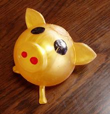 このぶたさんは・・・握ったり、こんな風に机や壁にポンと投げると、ぺタ~とつぶれて変形します。その姿が何とも可愛いですよ♪