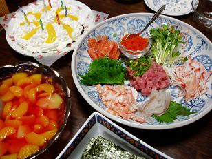 ←手巻き寿司とチーズケーキでお祝いです。