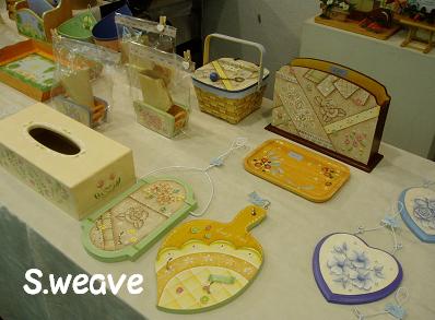 このようなトールペイントの作品の並ぶ、トール教室「エス☆ウィーヴ」作品展が