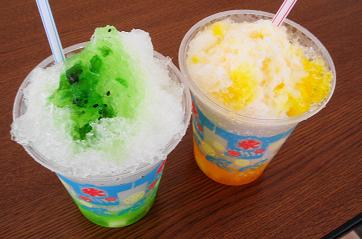 カキ氷で暑気払い♪マンゴーミルクにキウイ味。下にゼリーやお餅みたいのが入っていて美味しかったです。