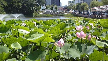 ←会場傍の、お堀の蓮と睡蓮もとても綺麗でした。