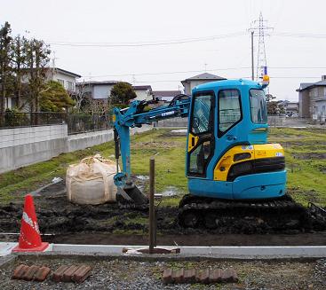 金曜日から、やっと駐車場横の側溝工事が再開。