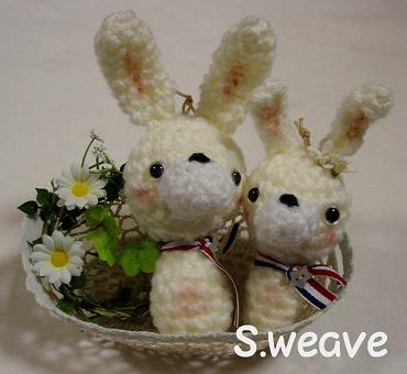 ←うさぎさんのしっぽは、羊毛フエルトを、洗剤でコロコロして作って付けました。