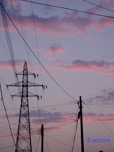 鉄塔と電柱から伸びた電線が、マリオネットの糸みたい・・・